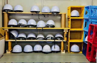 点呼場にヘルメット置場を設置してみました。 |